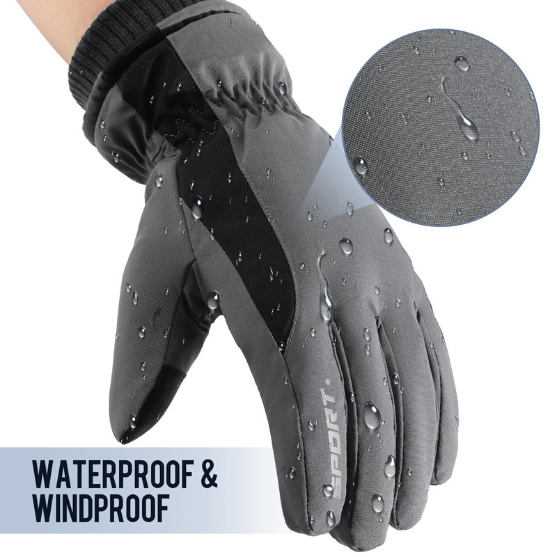 DOFOWORK Ski Gloves - Winter Gloves Waterproof Breathable Snowboard Gloves for Cold Weather, Snow Gloves for Men/Women - Gray