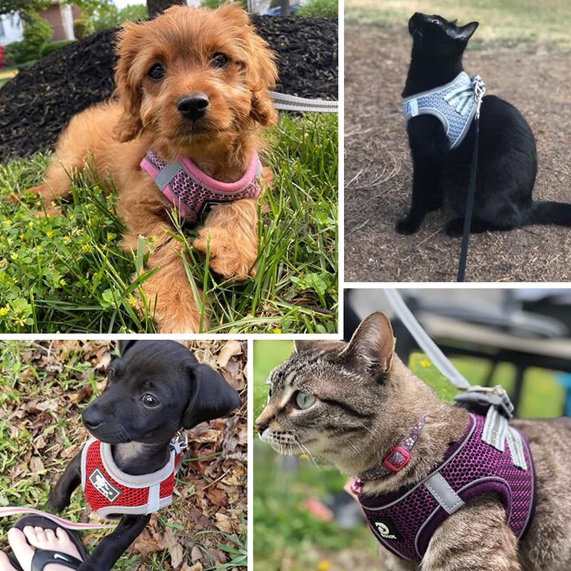 Dog and Cat Universal Harness with Leash - Cat Harness Escape Proof - Adjustable Reflective Step In Dog Harness for Small Dogs Medium Dogs - Soft Mesh Comfort Fit No Pull No ChokE