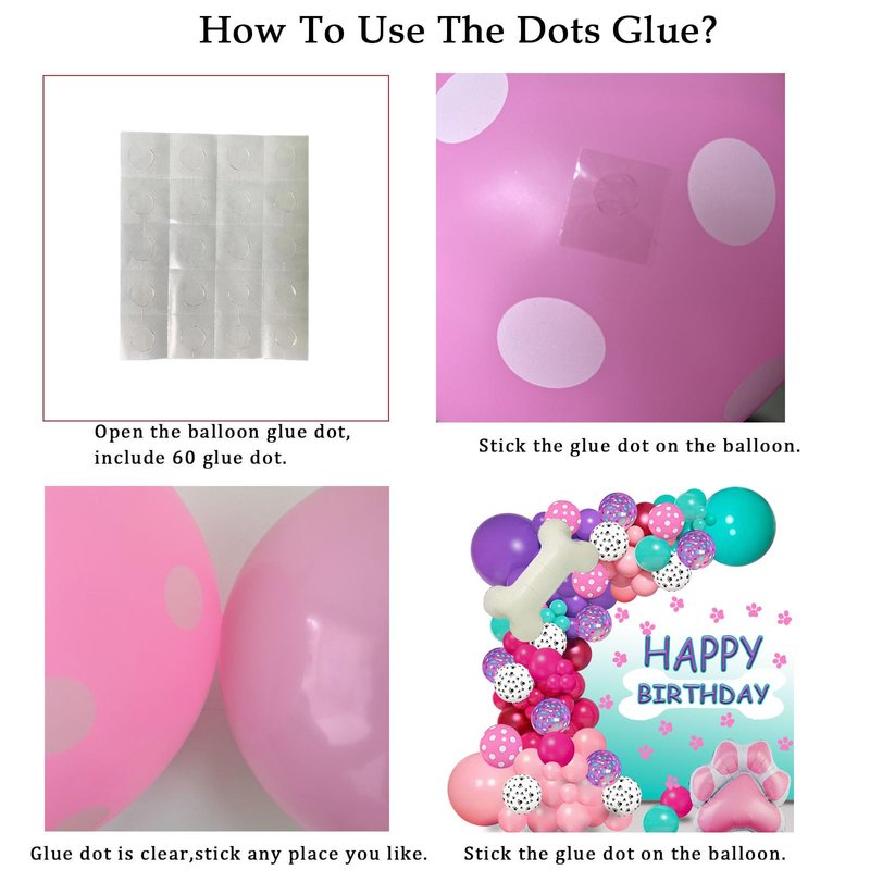 - Easy Diy:Along with all those hand-picked Balloons in 4 sizes, you get the following: 1pcs dog bone balloon, 1pcs claw balloon,glue dots, 16ft balloon garland strip, and 32ft tying ribbon to securely hang your Birthday Decorations or each individual balloon. We make decorating for Busy people fun and simple, Feel like an actual party planner and create Your own style