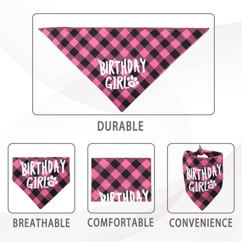 - 【DOG BIRTHDAY BANDANA】Soft and comfortable dog birthday bandana is in a black and rose red plaid style. Size: 25" x 17'' x 17''. Suitable for puppy dogs whose neck size is less than 22 inches.