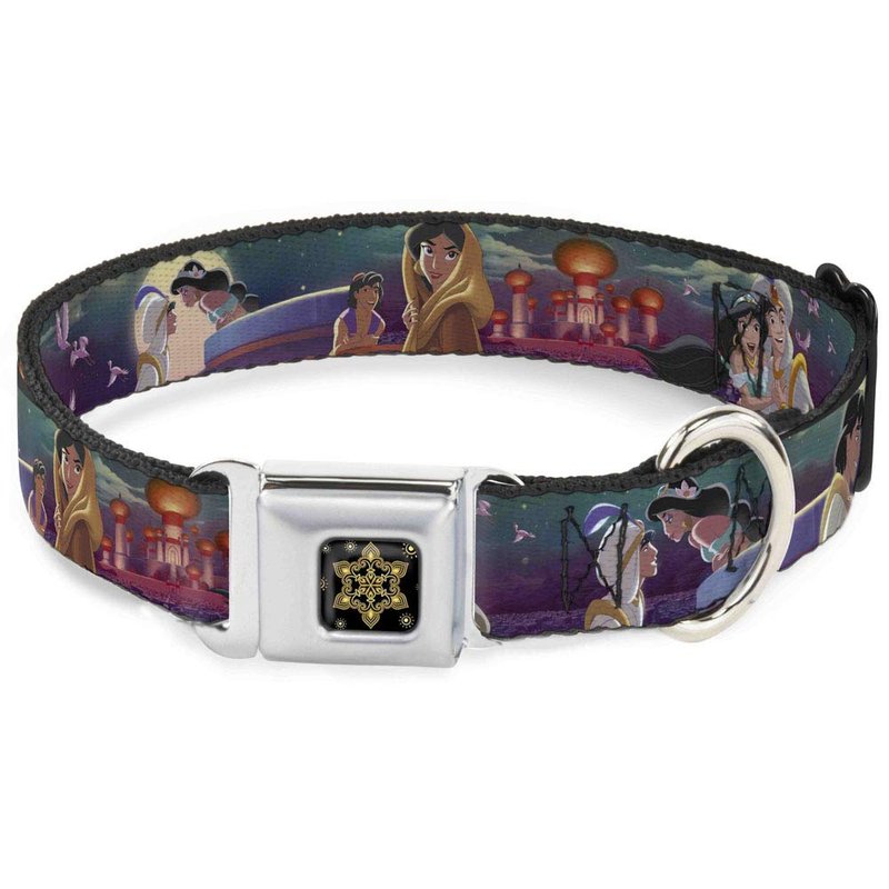 - Style: Buckle-Down Seatbelt Buckle Dog Collar - Aladdin & Jasmine Scenes/Castle/Birds - 1.5" Wide - Fits 16-23" Neck - Medium