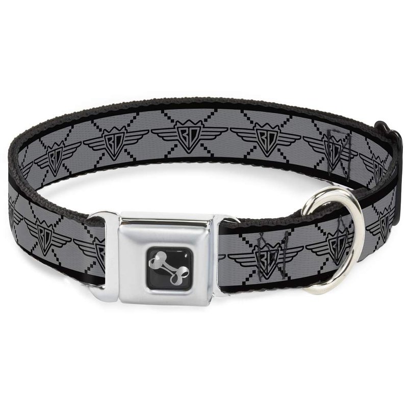 - Style: Buckle-Down Seatbelt Buckle Dog Collar - BD Monogram2 Gray/Black - 1.5" Wide - Fits 18-32" Neck - Large