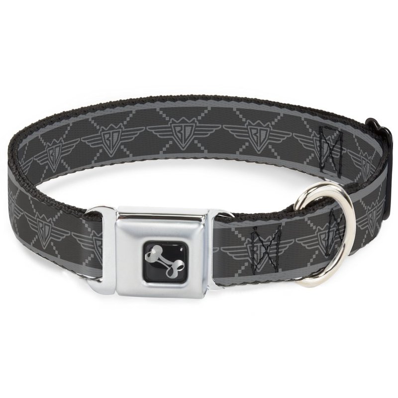 Dog Collar Seatbelt Buckle Buckle Down BD Monogram2 Grays 16 to 23 Inches 1.5 Inch Wide