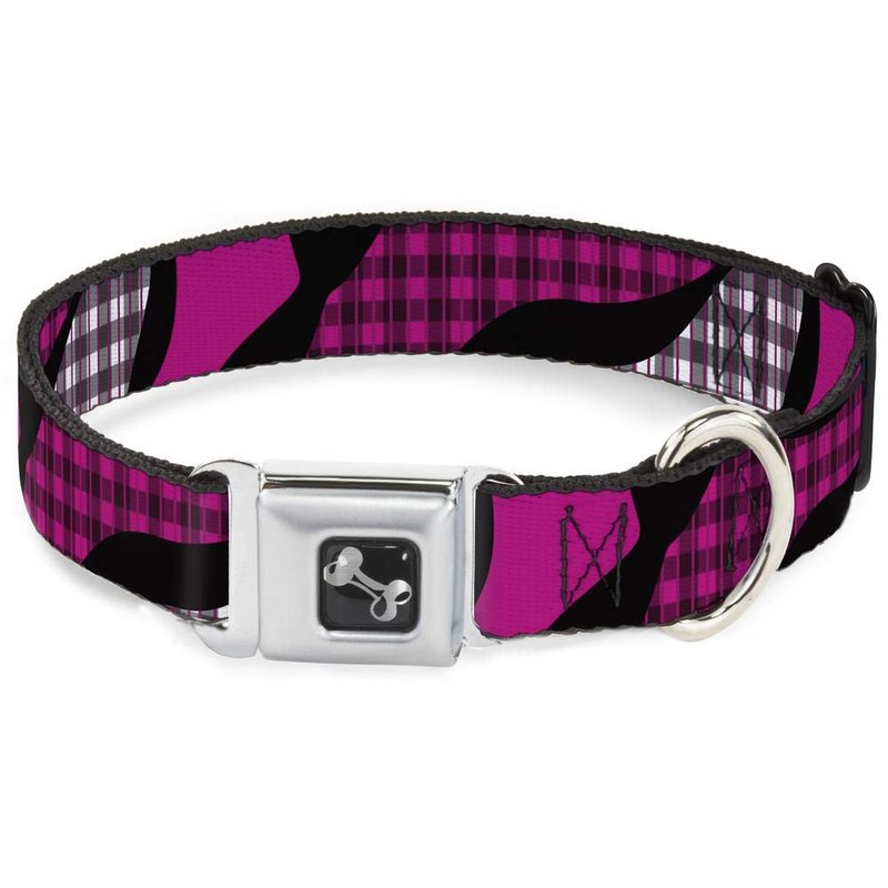 - Style: Buckle-Down Seatbelt Buckle Dog Collar - Buffalo Plaid Abstract White/Black/Fuchsia - 1.5" Wide - Fits 13-18" Neck - Small