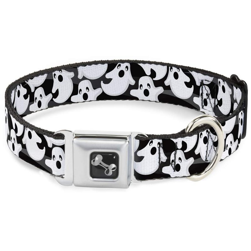 - Style: Buckle-Down Seatbelt Buckle Dog Collar - Ghosts Scattered Black/White - 1.5" Wide - Fits 18-32" Neck - Large