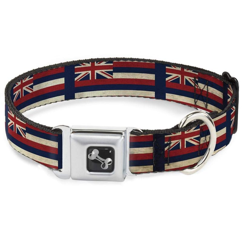 - Style: Buckle-Down Seatbelt Buckle Dog Collar - Hawaii Flags2/Navy - 1" Wide - Fits 15-26" Neck - Large