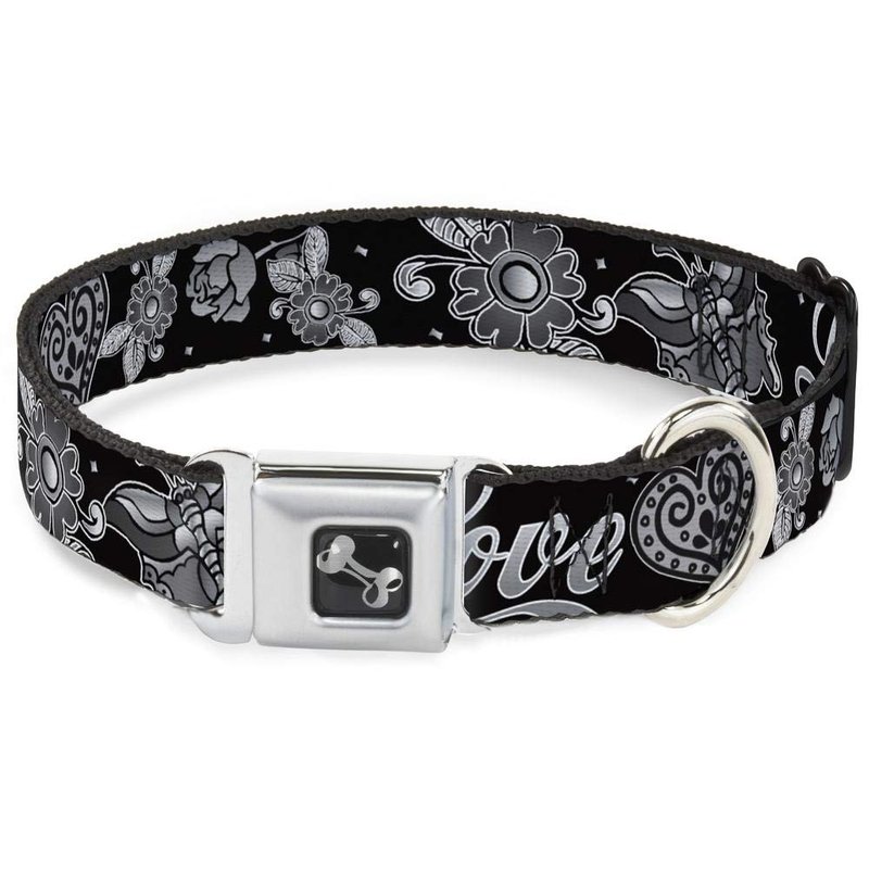 - Style: Buckle-Down Seatbelt Buckle Dog Collar - Love Kills Black/White - 1" Wide - Fits 15-26" Neck - Large