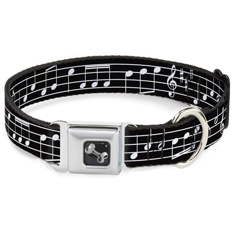 - Style: Buckle-Down Seatbelt Buckle Dog Collar - Music Notes Black/White - 1" Wide - Fits 11-17" Neck - Medium