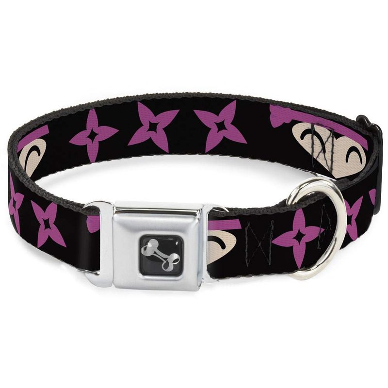 - Style: Buckle-Down Seatbelt Buckle Dog Collar - Ninja Star Black/Pink - 1" Wide - Fits 11-17" Neck - Medium