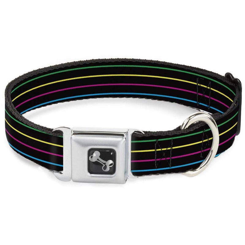 - Style: Buckle-Down Seatbelt Buckle Dog Collar - Pinstripes Black/Multi Color - 1" Wide - Fits 11-17" Neck - Medium
