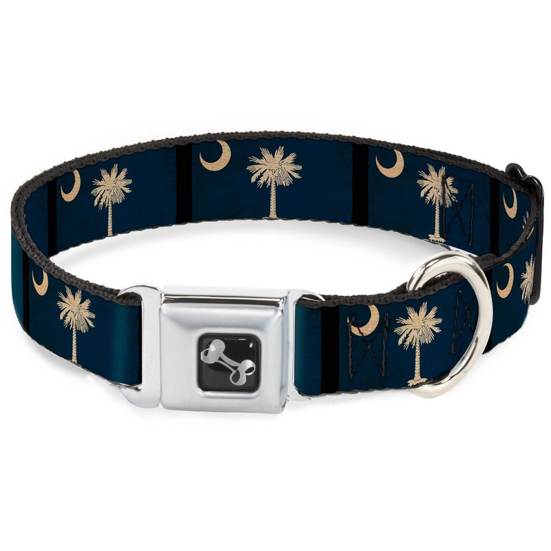 - Style: Buckle-Down Seatbelt Buckle Dog Collar - South Carolina Flag Distressed/Black - 1.5" Wide - Fits 16-23" Neck - Medium