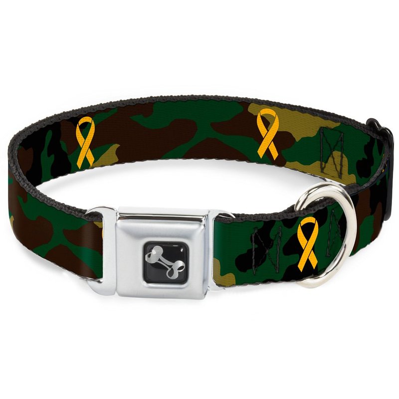 - Style: Buckle-Down Seatbelt Buckle Dog Collar - Support Our Troops Camo Olive/Yellow Ribbon - 1.5" Wide - Fits 18-32" Neck - Large