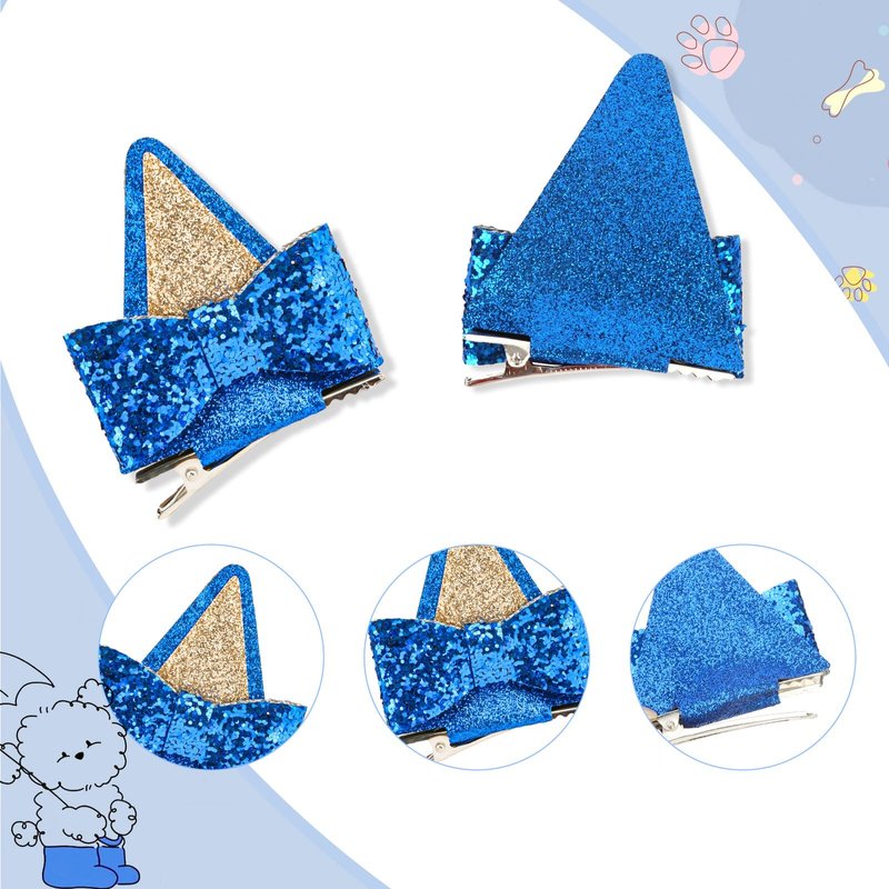 - Dog Ears Hair Clips: Shiny sequin ears with bow, blue and orange colors, giving you more collocation choices, and you can shared it with family or friends.