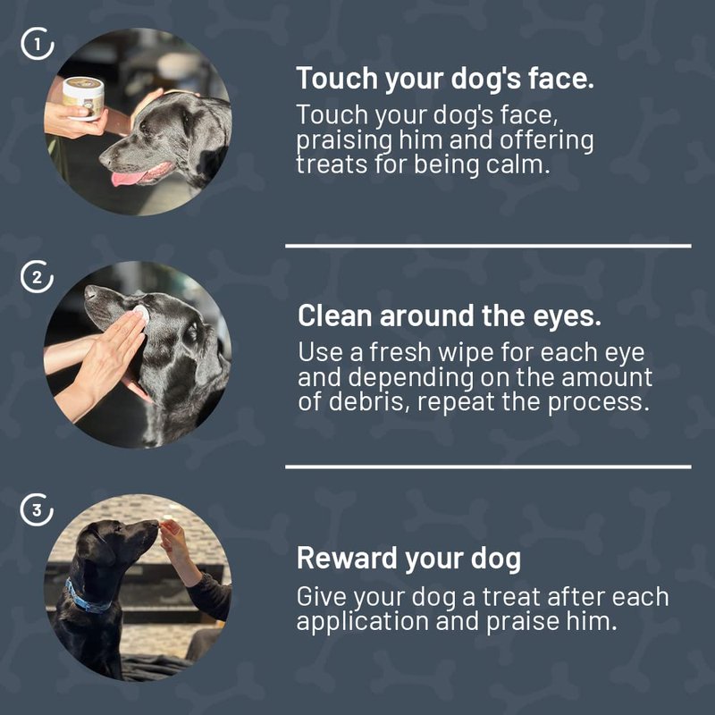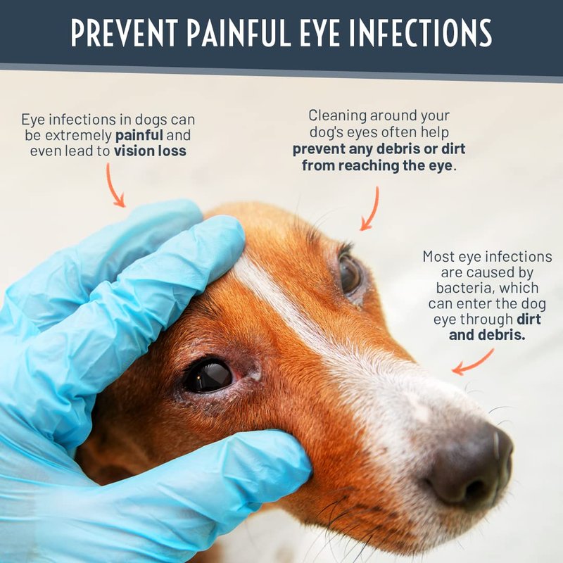 - Did you know dirt and debris can lead to eye infection? Cleaning around your pup's eyes frequently with our dog eye wipes removes dirt, discharge or crust that could lead to inflammation and infection