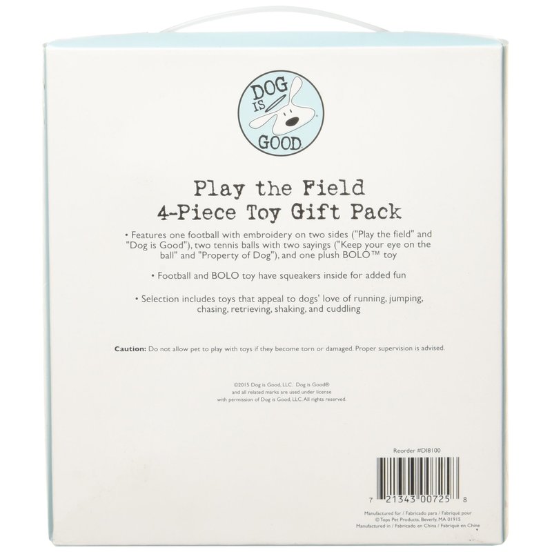 Dog Is Good 4-Piece Dog Toy Gift Box – Play The Field Plush Toys Great for Games of Fetch to Exercise Your Dog