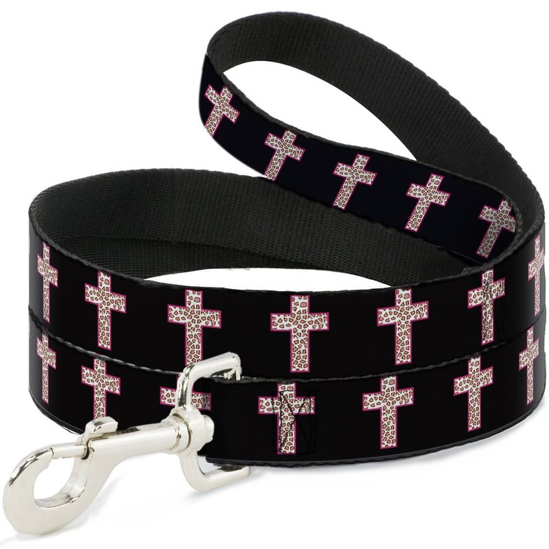 - Style: Buckle-Down Pet Leash - Cross Repeat Black/Leopard Brown/Pink Outline - 4 Feet Long - 1" Wide
