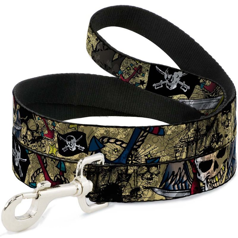 - Style: Buckle-Down Pet Leash - Dead Men Tell No Tales CLOSE-UP Tan - 4 Feet Long - 1/2" Wide