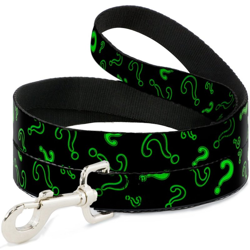 - Style: Buckle-Down Pet Leash - Question Mark Scattere2 Black/Neon Green - 4 Feet Long - 1.5" Wide