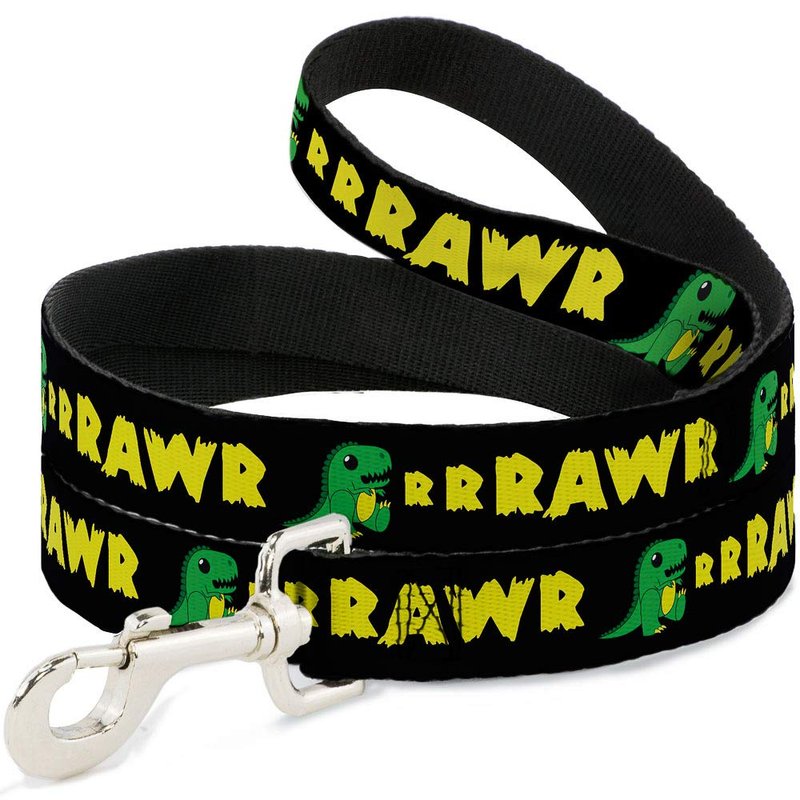 - Style: Buckle-Down Pet Leash - RRRAWR Dinosaur Black/Green/Yellow - 4 Feet Long - 1.5" Wide