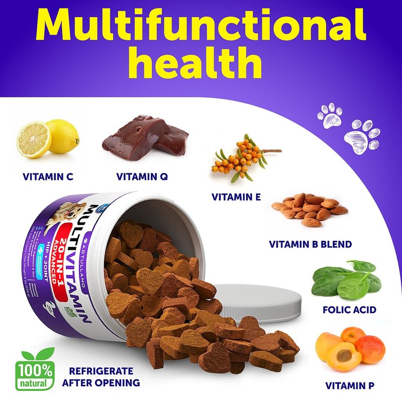 - 20-IN-1 Dog Multivitamin: Our specially formulated dog chews provide a comprehensive blend of dog supplements & vitamins, including 6 probiotics, Omega-3 rich salmon oil, and glucosamine, promoting overall wellbeing for your beloved pet.