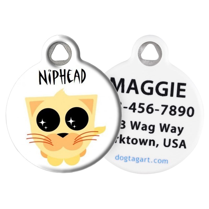 Dog Tag Art Custom Pet ID Tag for Cats - Nip Head - Small - .875 inch
