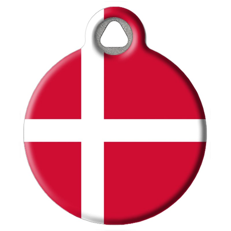 Dog Tag Art Danish Flag Personalized Pet ID Tag for Dogs and Cats, Silent Polymer Coated Stainless Steel Flag of Denmark Nametag with Customized Identification Information- Small .875" Diameter