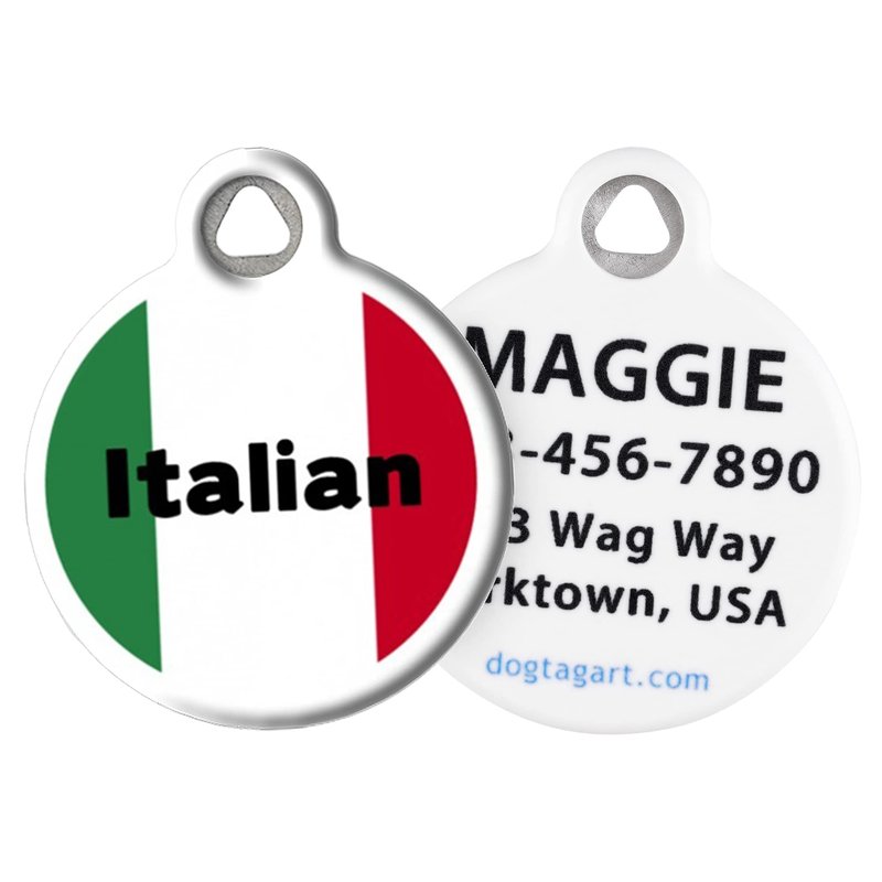 Dog Tag Art Italian Personalized Pet ID Tag for Dogs and Cats, Silent Polymer Coated Stainless Steel Nametag with Customized Idenification Information, Small .875" Diameter
