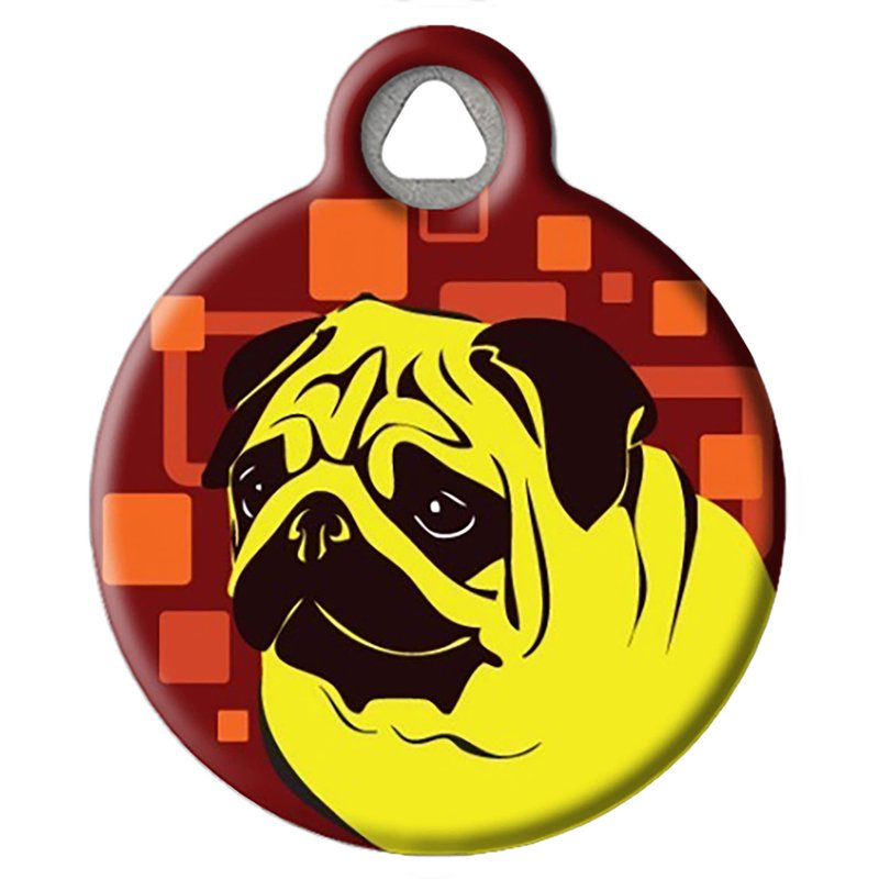 Dog Tag Art Mellow Yellow Pug Personalized Pet ID Tag for Dogs, Silent Polymer Coated Stainless Steel Nametag - Small .875" Diameter