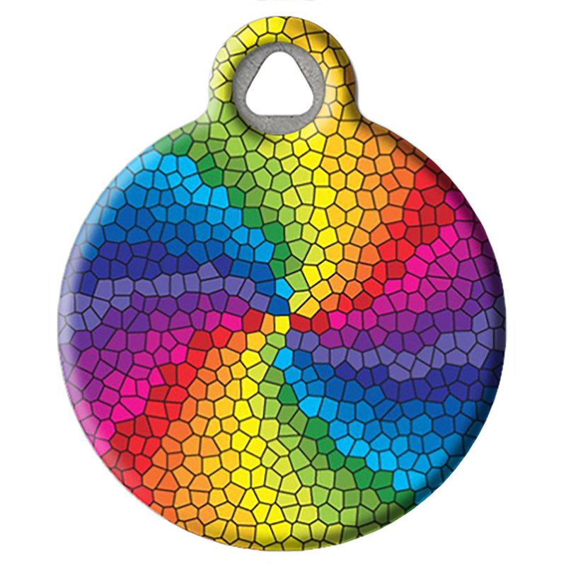 Dog Tag Art Vintage Retro Rainbow Custom Pet ID Tag for Dogs and Cats, Personalized Dog Tag with Customized Identification Information, Stained Glass Rainbow, Small (7/8" Diameter)