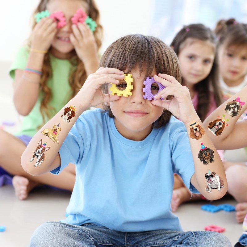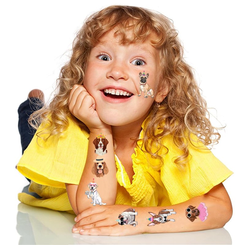 Dog Temporary Tattoos, Dog Waterproof Temporary Tattoo Stickers for Birthday Decorations, Party Supplies Party Favors, School Rewards Gifts