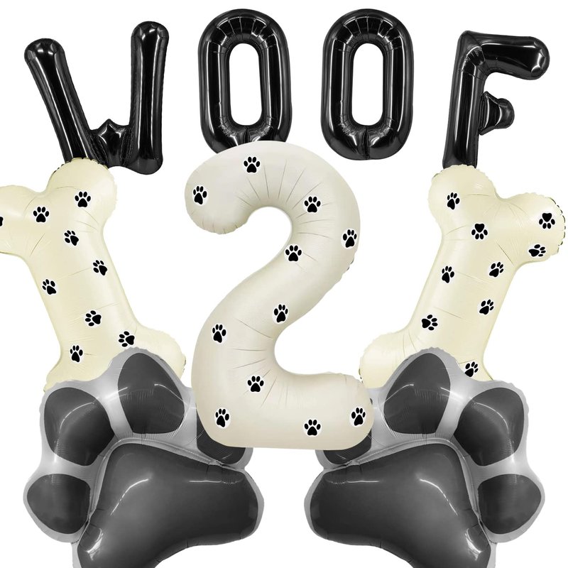 - What’s You Get: This puppy party decorations set includes 2pcs paw foil balloons(25.5x27.5"/65x70cm), 2pcs bone foil balloons(17.5x29.5"/45x75cm), 4 pcs w-o-o-f letter balloons(16"/ 40.5cm), 1 pc number 2 foil balloon(40"/101.5cm), one roll of paw print stickers(1"/2.5cm, total 500pcs)