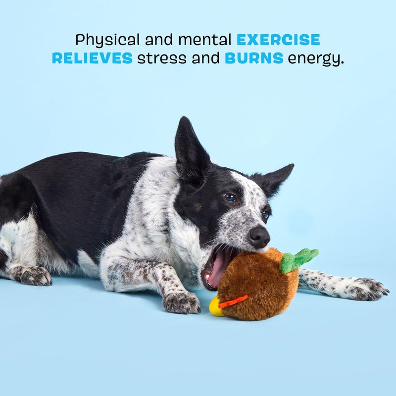 Meet the rooster that'll keep your dog occupied at sunrise (instead of waking you up). Rip and reveal! While this fowl friend boasts an extra tough plush outer layer, it’s hiding a surprise all-natural rubber core with a hidden treat dispenser. This rooster is tricky to pin down because the inner core features a rock and wobble rounded base. Where will he bounce next? Important:Remember that no toy is indestructible. Be sure to supervise your dog when playing and remove the toy if it becomes damaged.