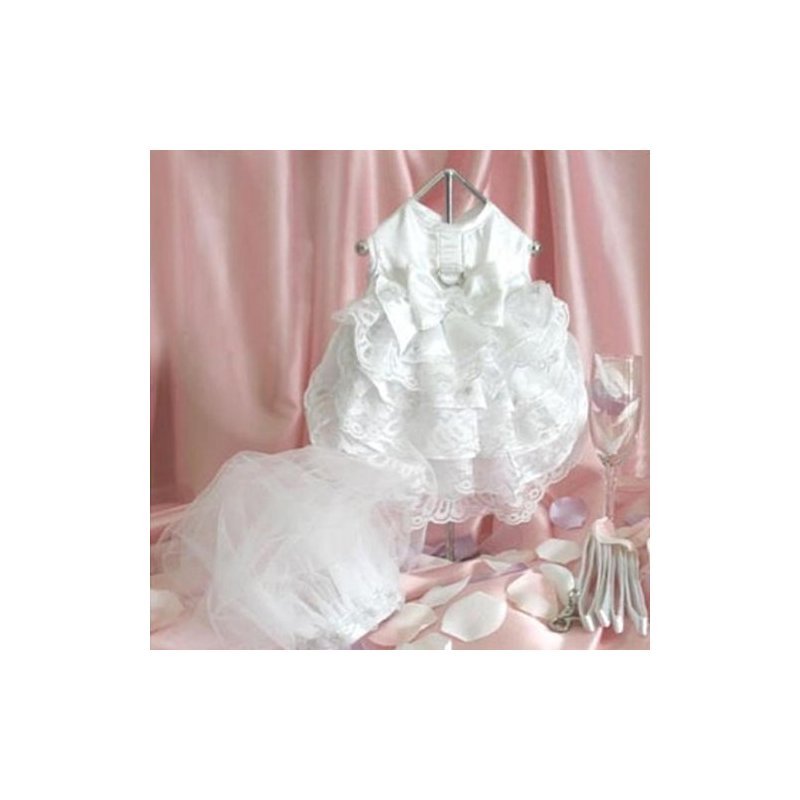 - Includes a matching White Satin Leash. Bridal gown set also comes with a matching wedding veil