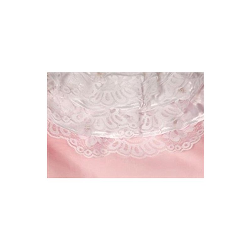 - The gown has three tiers of skirting, each with an under-skirt of delicate white scalloped lace