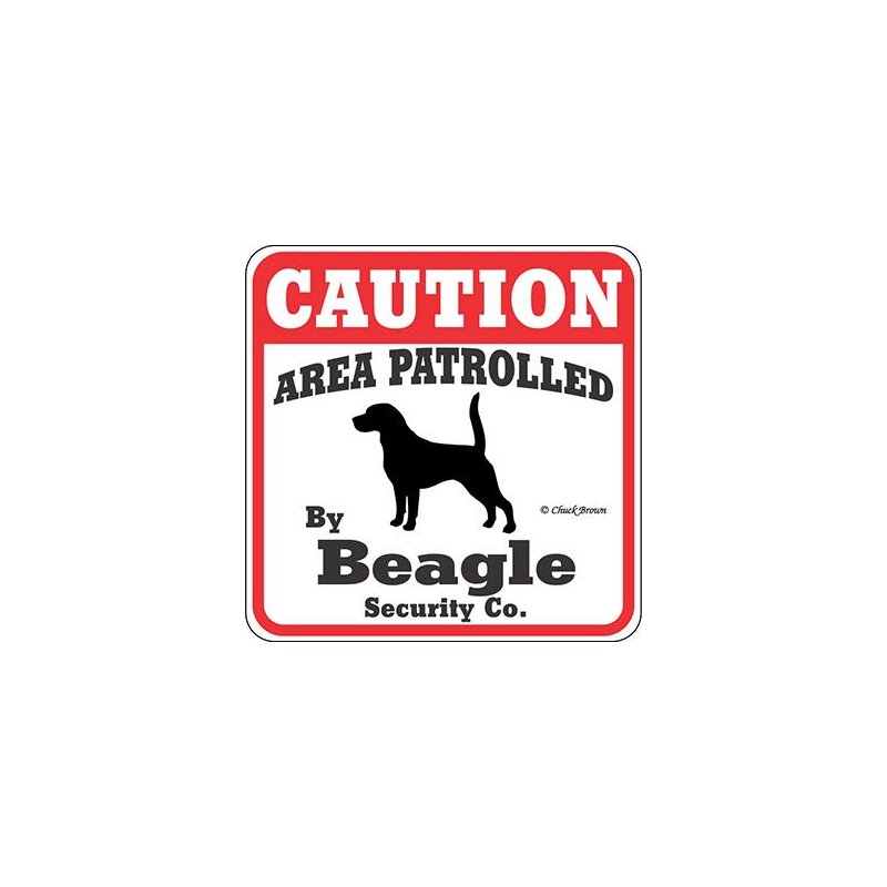 This "Caution Area Patrolled by " Beagle sign is a great way to let everyone know you have a Beagle patrolling your property. The Caution Area Patrolled signs are screen printed on UV protected Styrene with UV inks. These 11" x 11" signs are weather resistant and suitable for outdoors. Made in the USA. Making them the best Beagle gift on the market.
