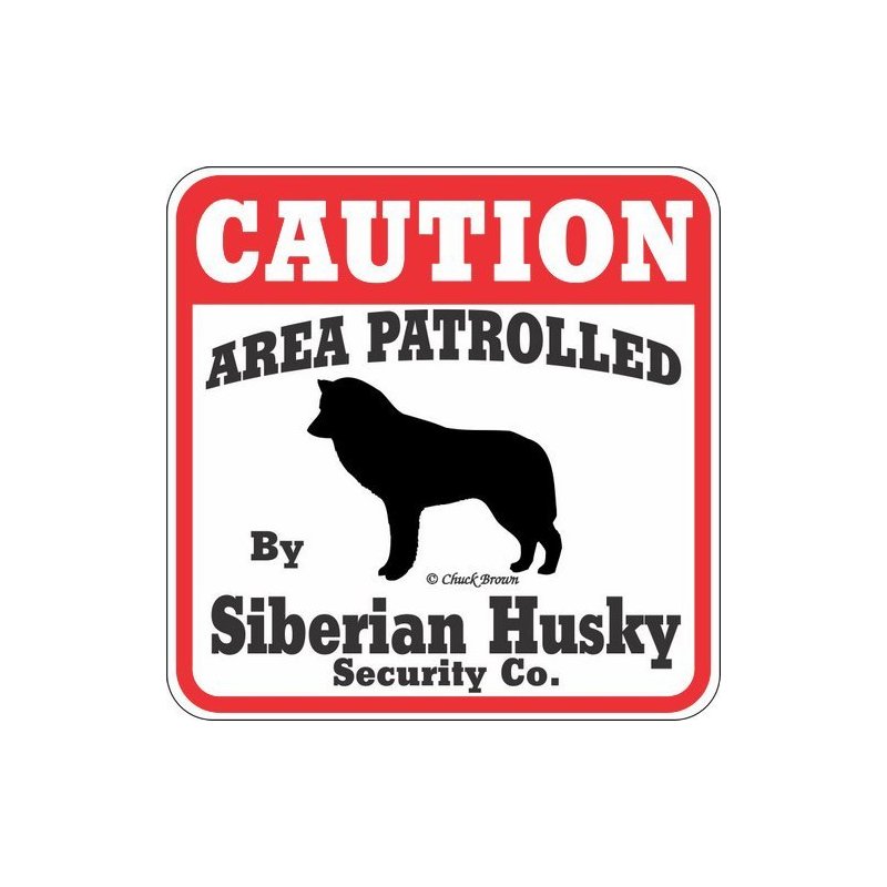 This "Caution Area Patrolled by " Siberian Husky sign is a great way to let everyone know you have a Siberian Husky patrolling your property. The Caution Area Patrolled signs are screen printed on UV protected Styrene with UV inks. These 11" x 11" signs are weather resistant and suitable for outdoors. Made in the USA. Making them the best Siberian Husky gift on the market.