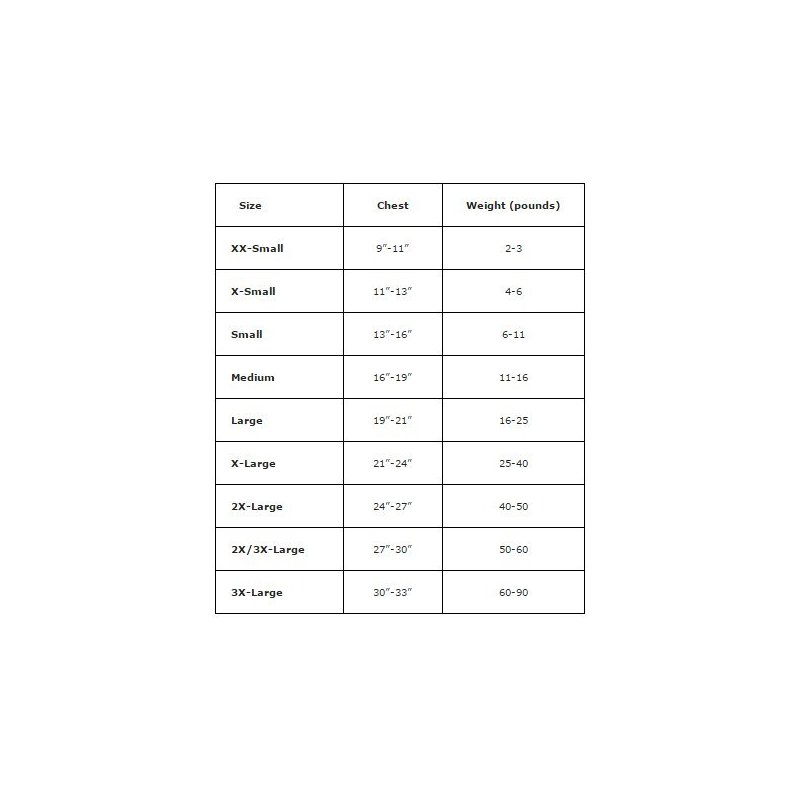 - IMPORTANT: Measure the CHEST only. If your dog is on the borderline between sizes, always GO DOWN to the lower size, not up.