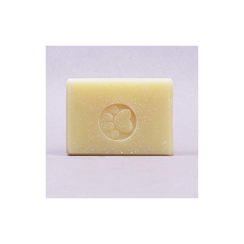 Pamper your pooch without using harsh chemicals. This great bar, made with apricot kernel, olive, and jojoba oils with added aloe butter, this is so gentle to their skin while leaving the coat shiny and clean. We add essential oils of citronella, eucalyptus, lavender, lemongrass, and more to help keep the bugs at bay. We get rave reviews on this one and have even been told it works wonders if your dog gets "skunked". Not for use on cats! 4 ounce bar.