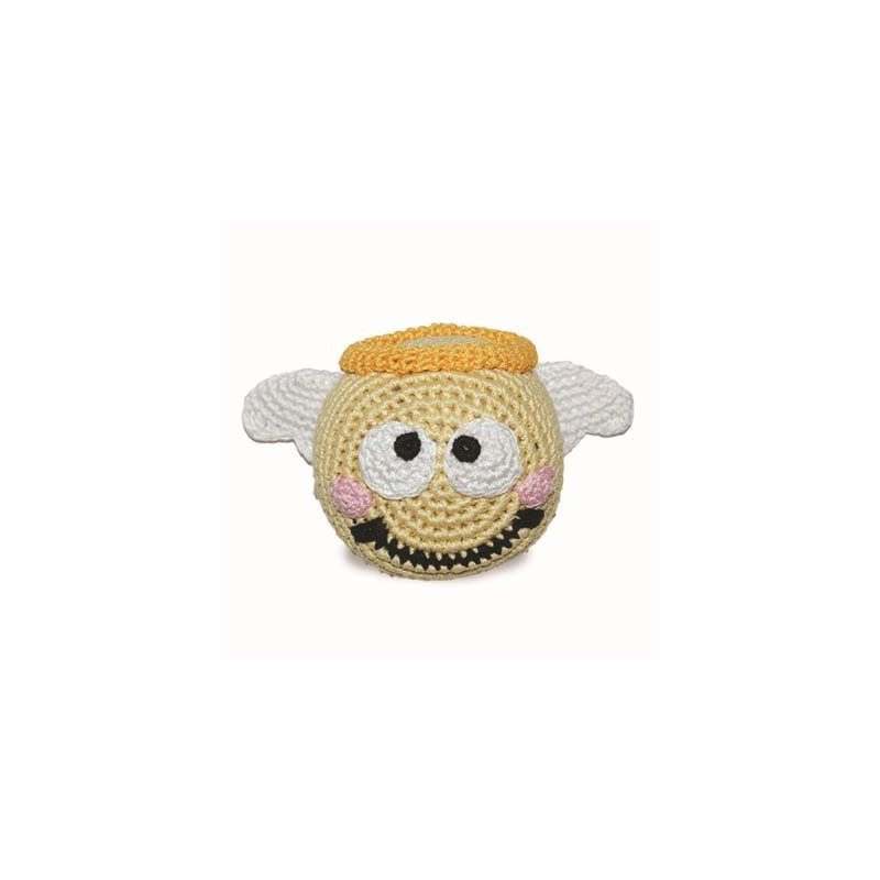 Handmade interlaced cotton thread, designed to be flexible, durable, and improves dental health by removing deposits of calculus. All that with a squeaker inside! Hours of fun for your pooch. Measures about 3 inches long.