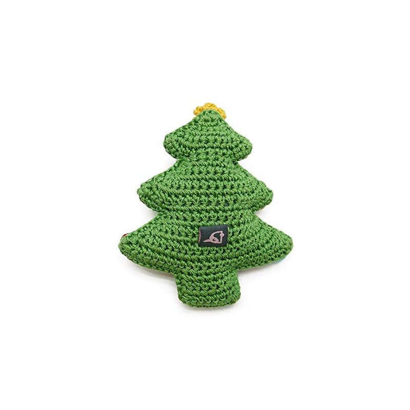 Adorable crochet dog toy. This cute Christmas tree is outfitted with ornaments and a squeaker inside! Hours of fun for your pooch. Measures about 4 inches long.