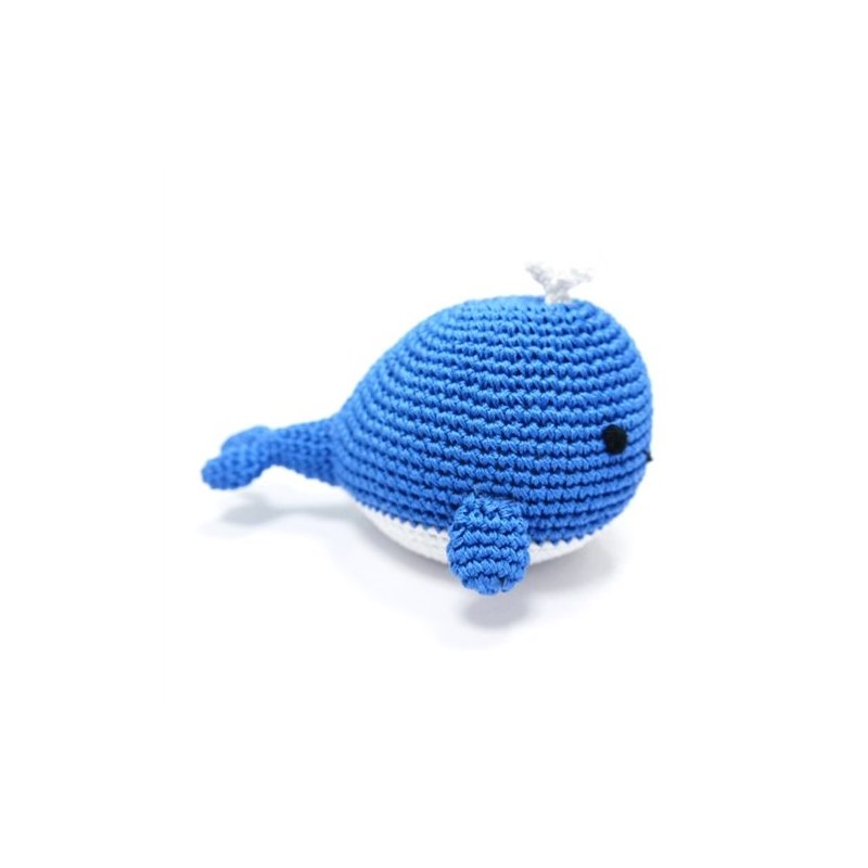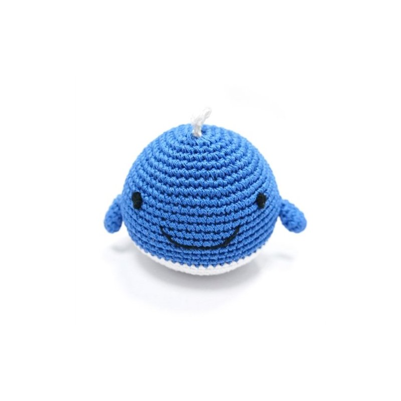 Highly detailed whale dog crochet toy. Handmade interlace cotton thread, designed to be flexible, durable, and improves dental health by removing deposits of calculus. All that with a squeaker too! Hours of fun for your pooch. Measures about 4 inches long.