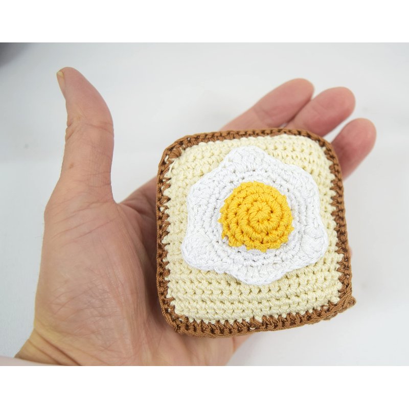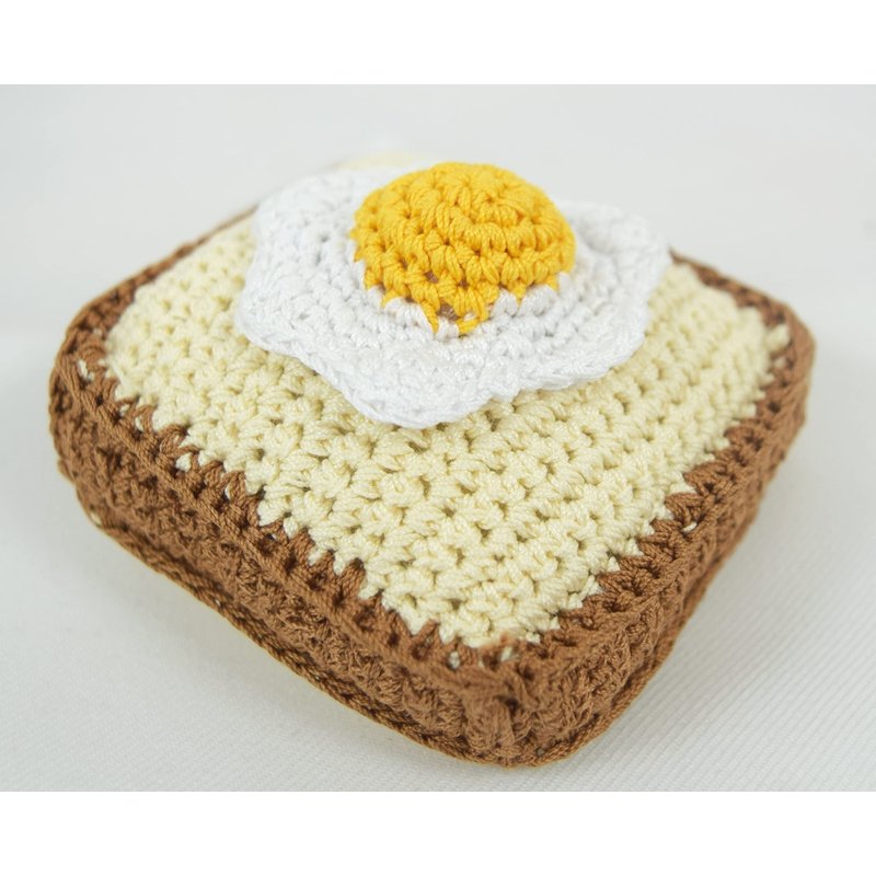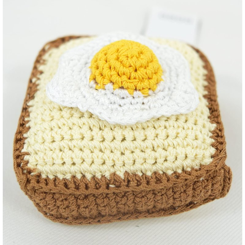 DOGO Pet Fashions Dog Teeth Cleaning Cotton Crochet Squeaky Dog Toy for Small Dog - Toast & Egg