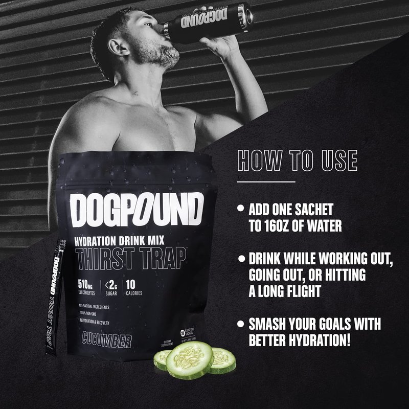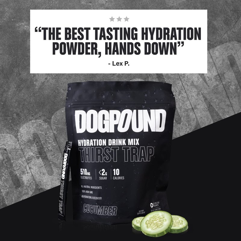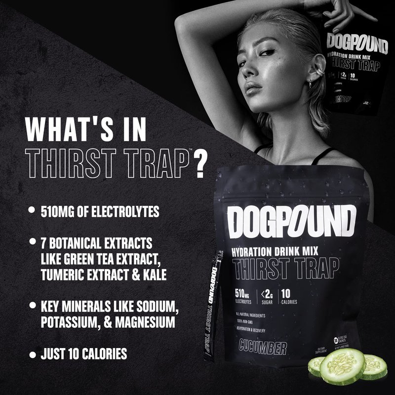 DOGPOUND Thirst Trap | Hydration Supplement | Electrolyte Drink Mix for Workout & Nightlife Recovery | Cucumber | 10 Calories | 30 Easy Open Sticks