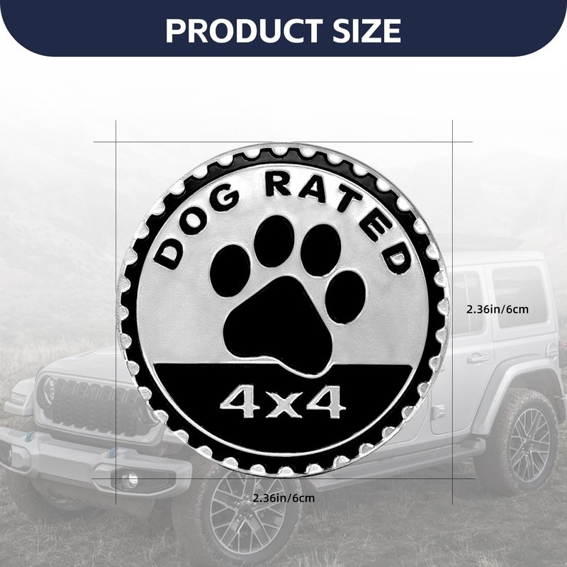 Dogs Badge Rated Car Emblem, 4 x 4 Automotive Car Badge Decals Stickers, 3D Metal Car Badges Round Emblem Decals, Car Exterior Emblems Badge Compatible with Jeep Wrangler Vehicles Trucks SUV