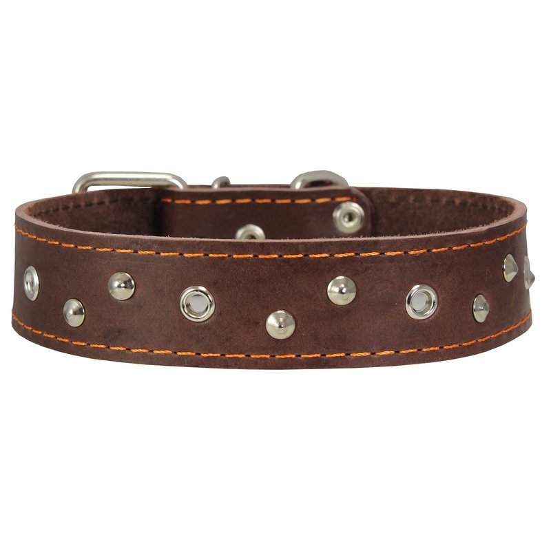 Dogs My Love Genuine Leather Dog Collar Studded 1.5" Wide, 16.5"-20" Neck (Brown)