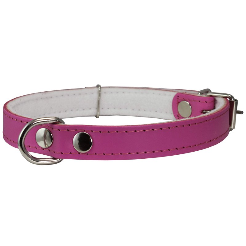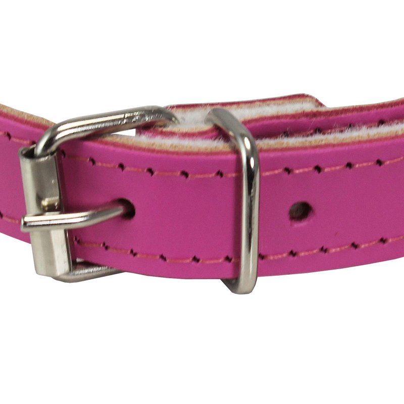 Dogs My Love Genuine Leather Felt Padded Dog Collar (14.25"-18" Neck; 3/4" Wide, Pink)