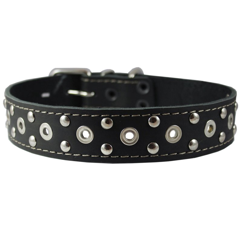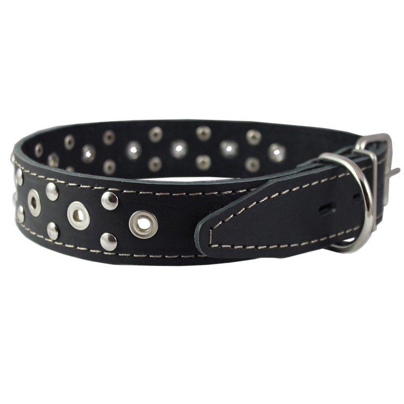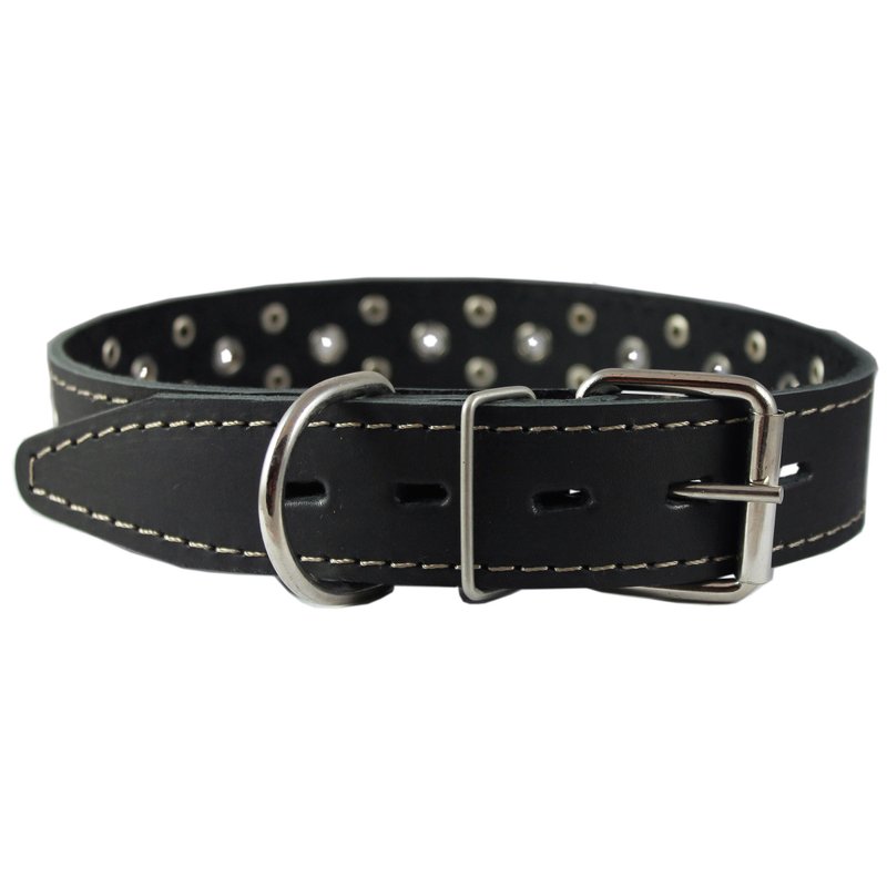This durable studded dog collar is made of quality genuine leather. Trimmed with thick waxed thread. Perfect collar for daily use, made to last.