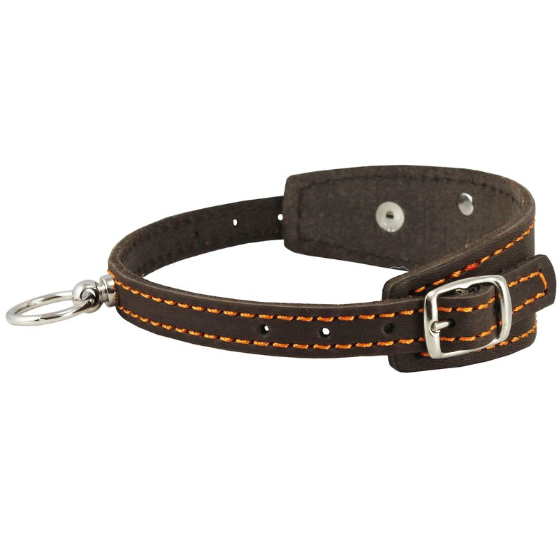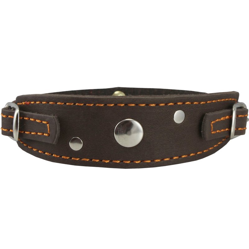 Dog collar made of soft and durable genuine leather. Features two nickel plated buckle and elevated D-ring base. Wider center portion for maximum comfort. Sized to fit 9.5"-12.5" neck circumference. Available in 4 colors. Ideal collar for everyday use. Please measure dog's neck before you order.