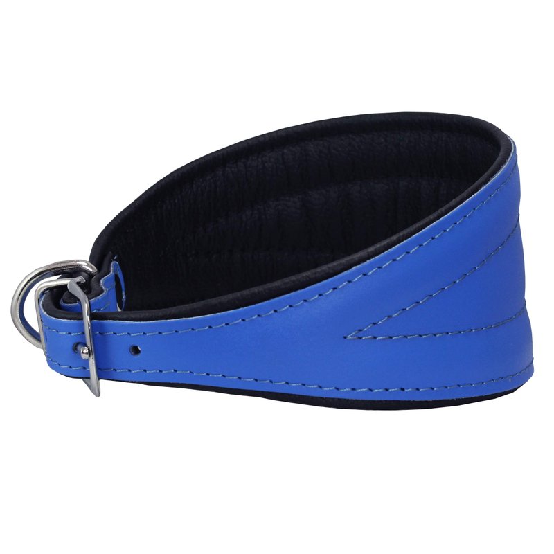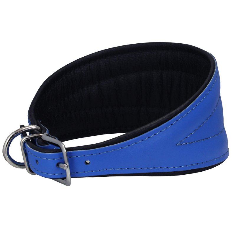 Dogs My Love Real Leather Extra Wide Padded Tapered Dog Collar (11"-13" Neck; 2" Wide, Blue)