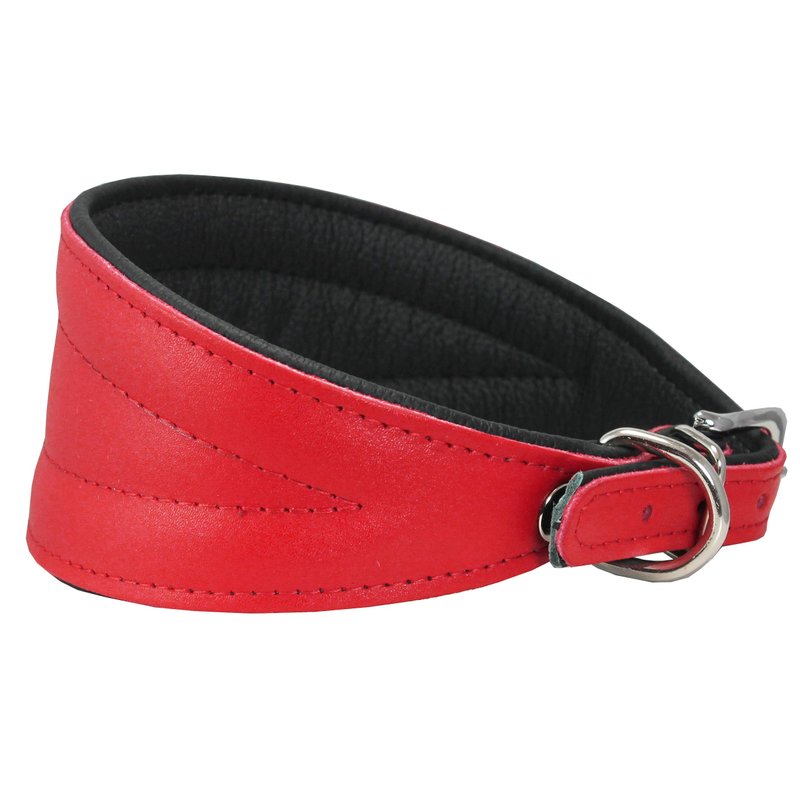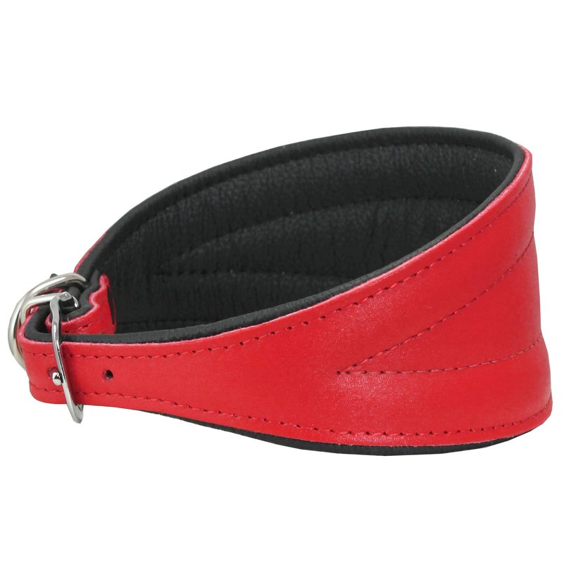 High quality 100% genuine leather top surface. Strong, durable, pliable, and very comfortable dog collar for every day use. Soft leather lining provides comfortable cushioning feel. Smooth and elegant look. Available in multiple colors. Features solid nickel plated hardware. 6 available sizes recommended for Greyhound, Saluki, Deerhound, Lurcher, Whippet, Dachshund, and other breeds with similar long neck/slender head structure. Please measure dogs neck to ensure you order the correct size.